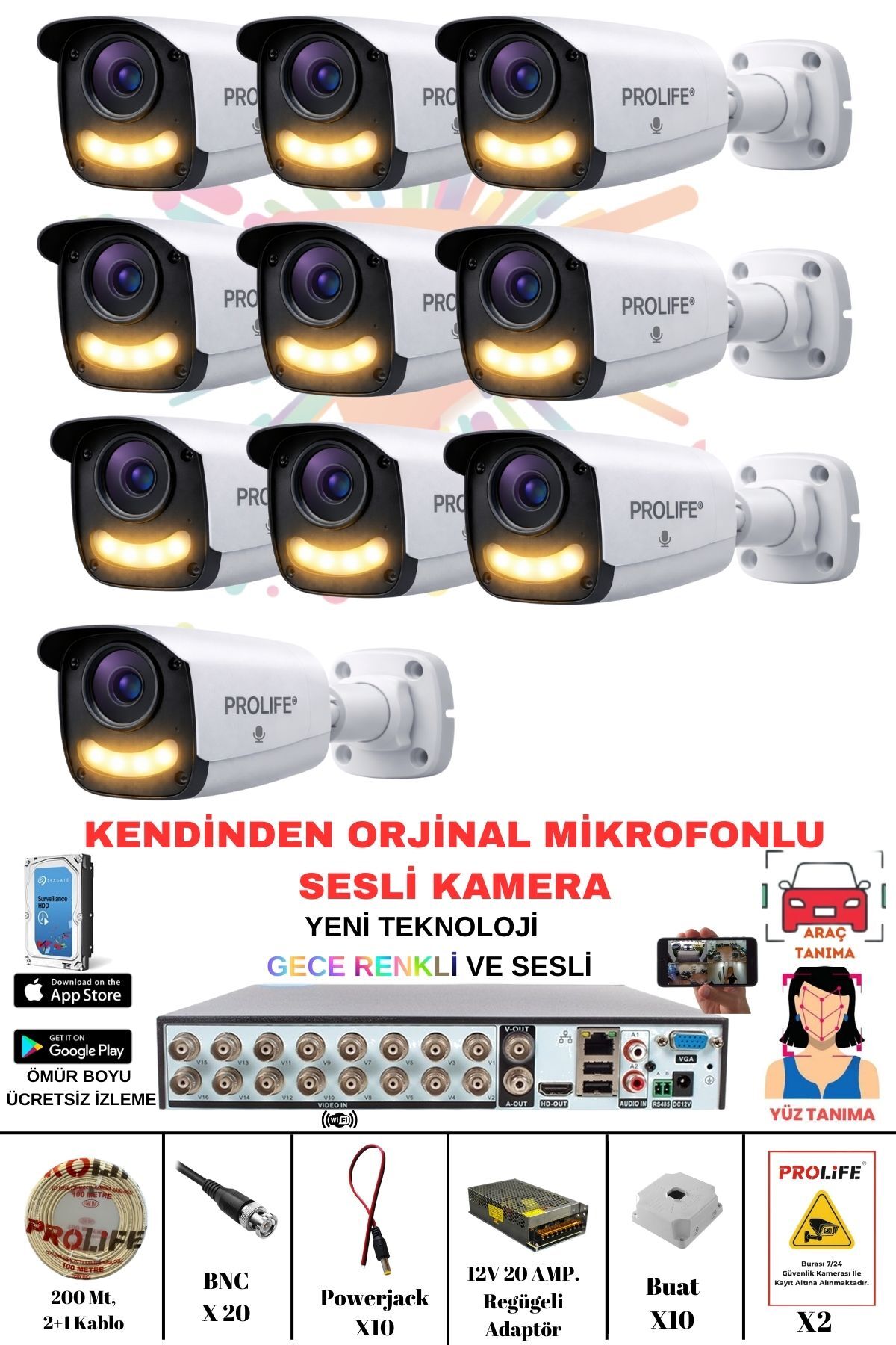 PROLİFE PLUS+ Serisi | 10 Kameralı Sesli, Gece Renkli, Yapay Zekâ Destekli 5 MP Profesyonel Güvenlik Kamera Sistemi