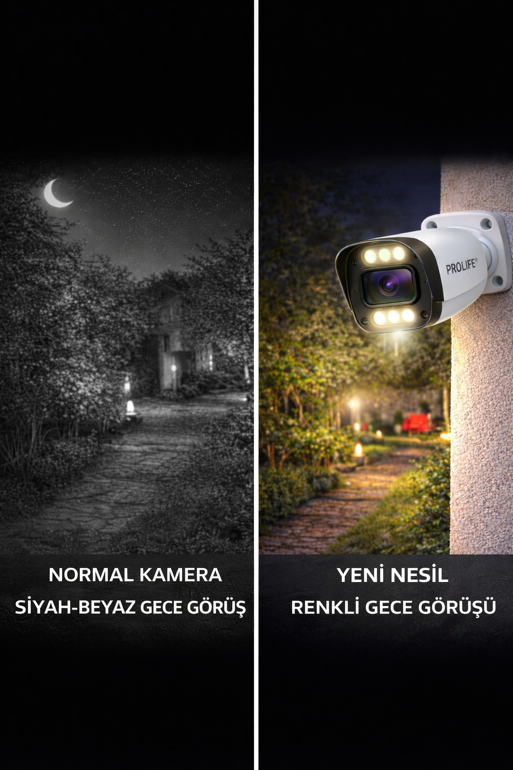 PROLİFE PLUS+ SERİSİ GECE RENKLİ WARM LED TEKNOLOJİLİ YAPAY ZEKA ÖZELLİKLİ KAMERA SİSTEMİ